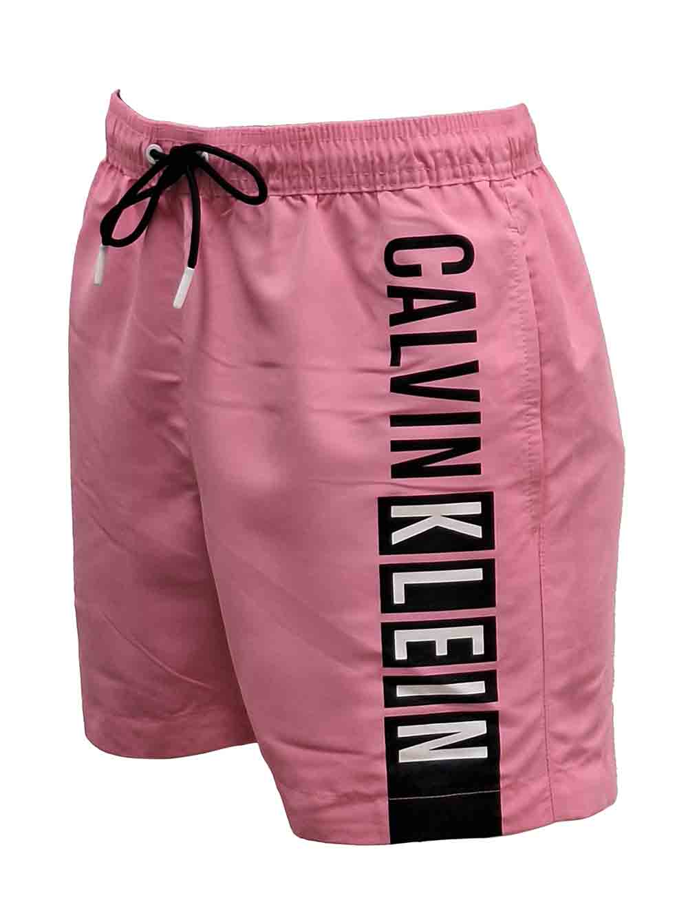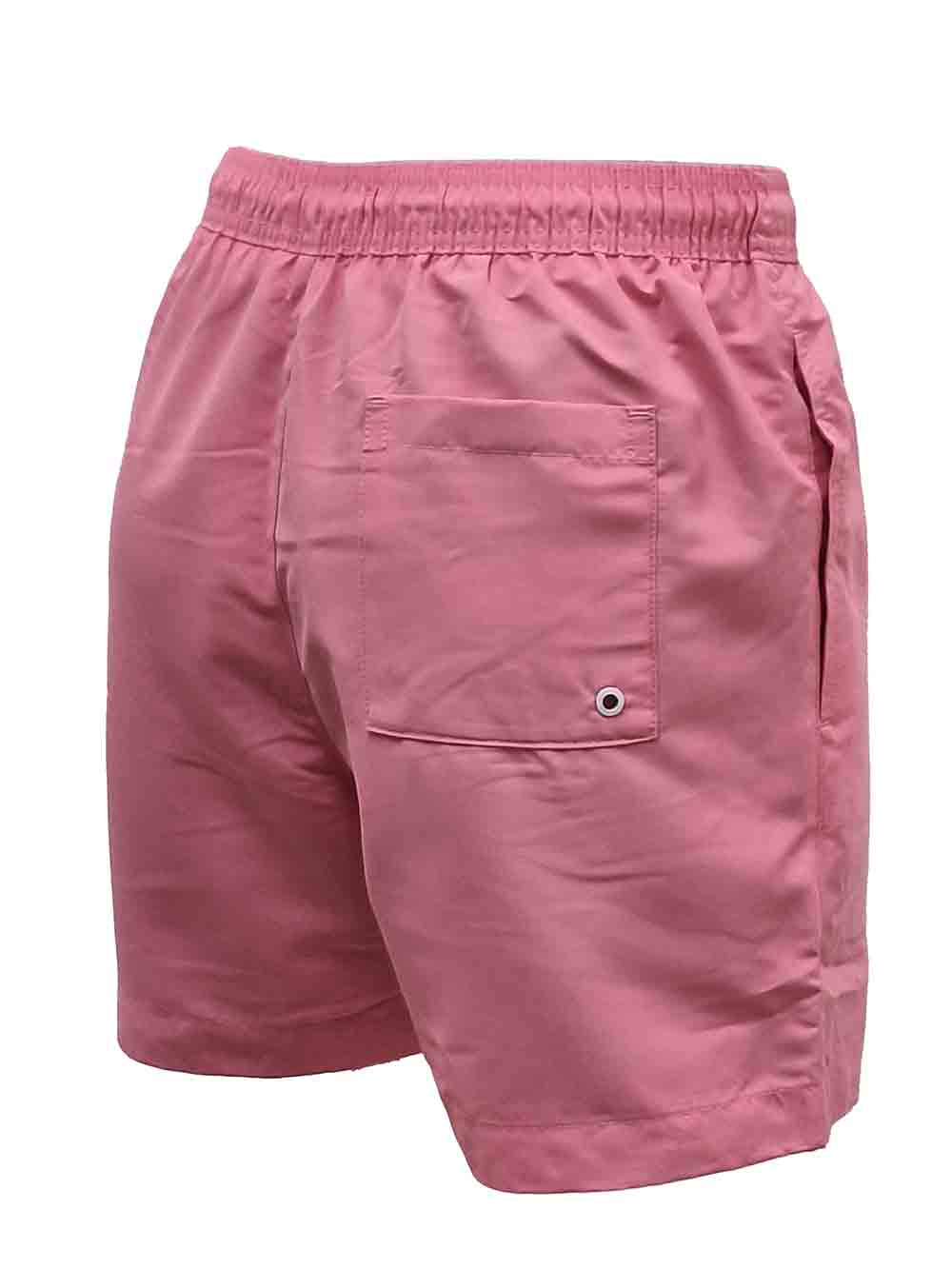 Boxer mare medio uomo color rosa intenso in corposo tessuto vela scivoloso, asciugatura rapida, tutto arricciato in vita con laccetto esterno regolabile, tasche laterali a filo invisibili, sul retro taschino a toppa con strap, slip interno a rete bianco, in laterale sul gambale sinistro macrologo gommato sui toni del nero/bianco, no terme.