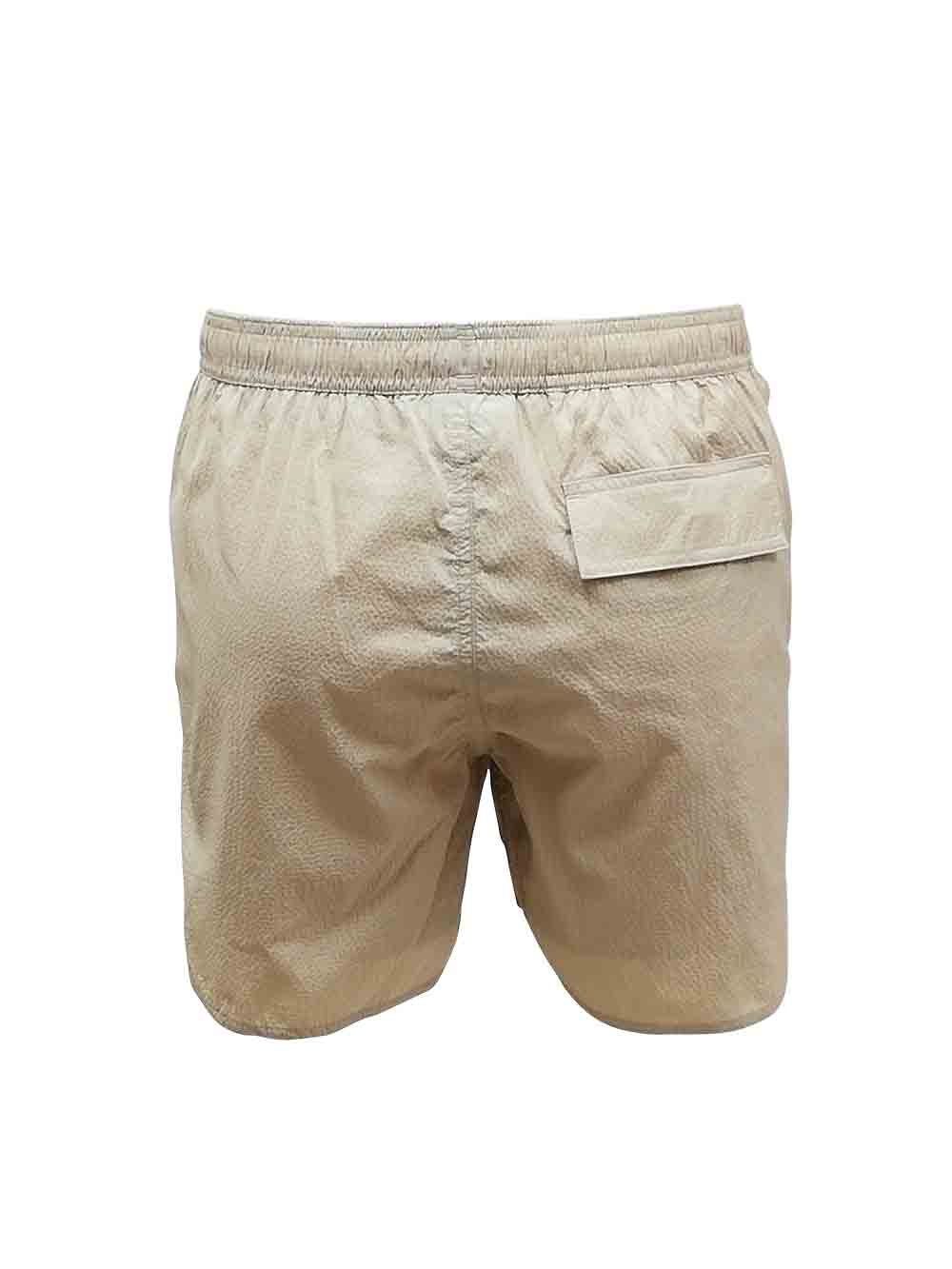 Boxer medio mare uomo color avana/coloniale in tessuto tecnico lavorazione Vichy a rilievo, asciugatura veloce, cinturino tutto arricciato con laccetto regolabile a vista, tasca laterale a filo invisibile, tasca dietro con pattina e strap, slip interno a rete.