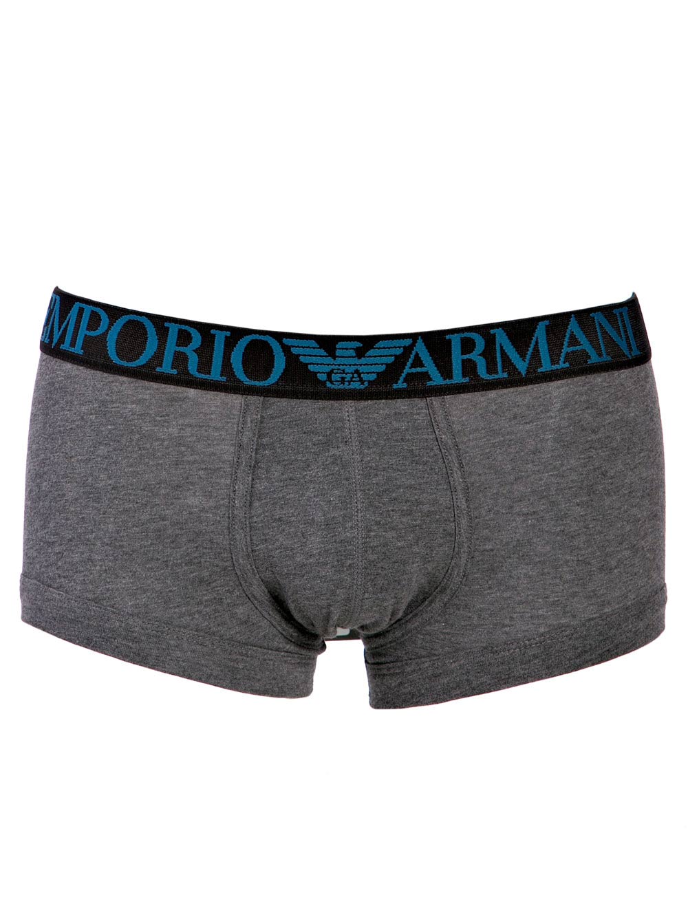 Boxer parigamba Emporio Armani, collezione Autunno Inverno, grigio antracite melange, in cotone elasticizzato, con elastico girovita in tono nero, tutto logato girovita.