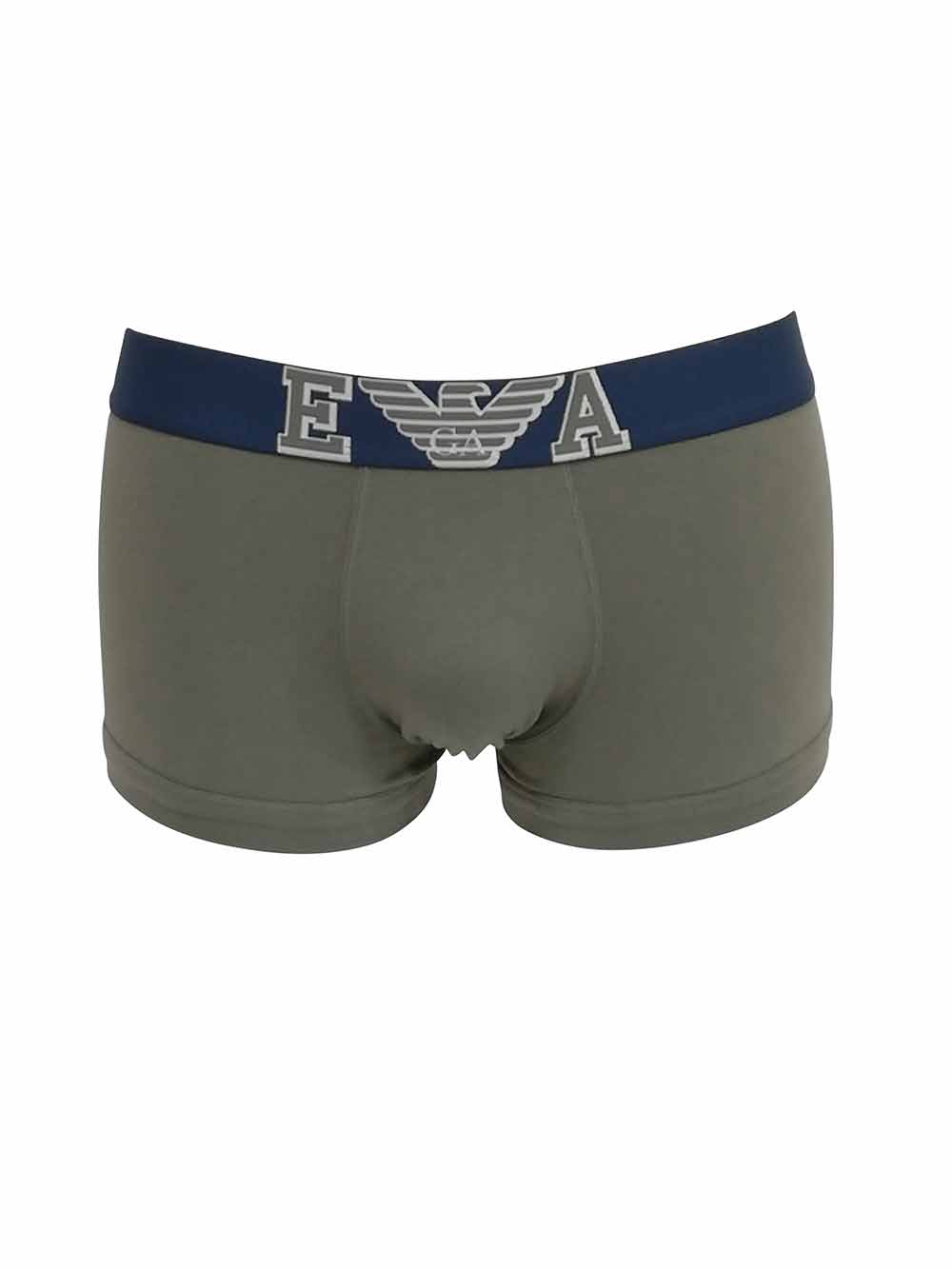 Boxer parigamba verde salvia uomo in morbido cotone elasticizzato, elastico medio girovita blu polvere con logo centrale più aquila sui toni del verde salvia/bianco.