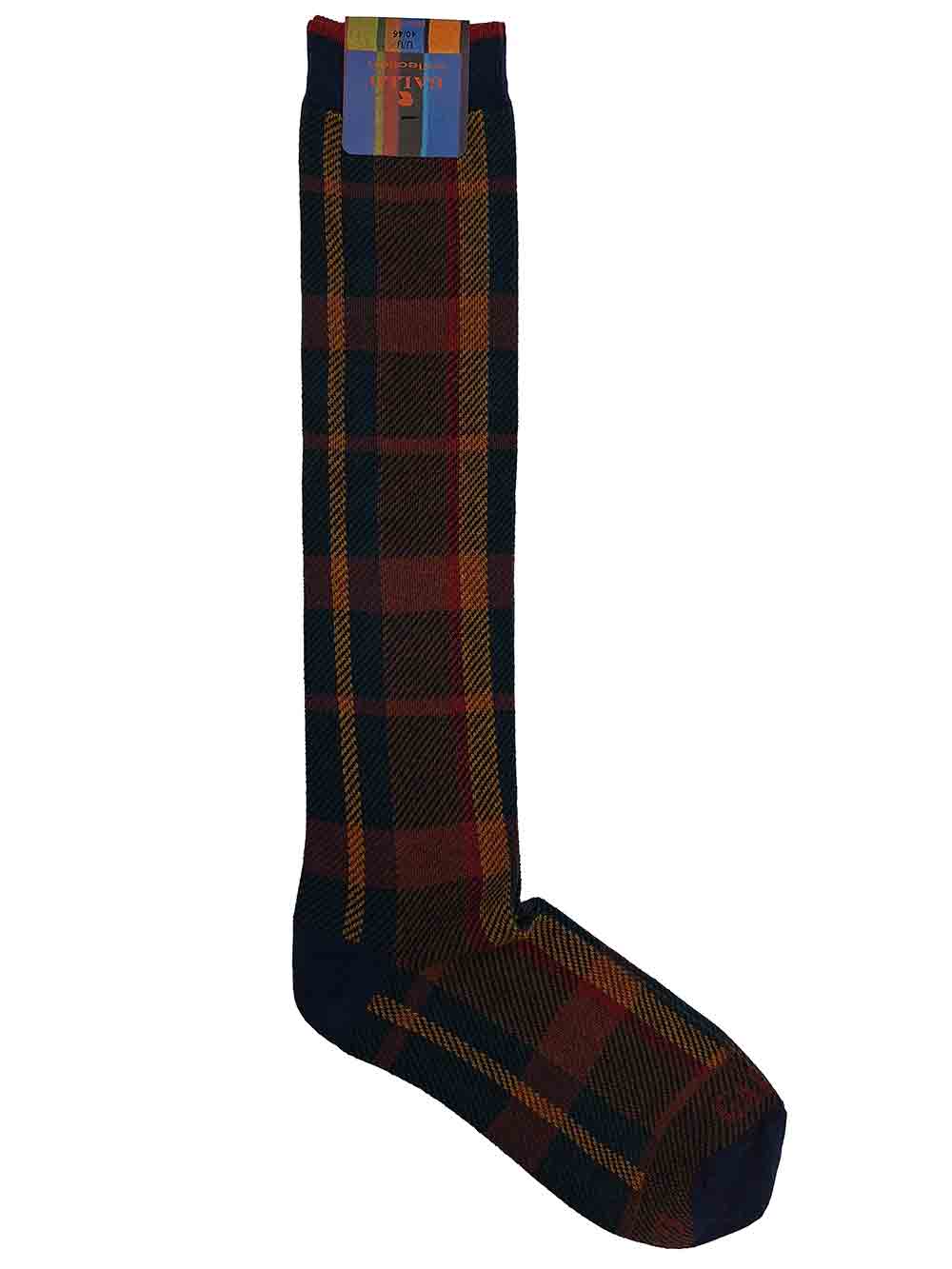 Calza uomo gambaletto maglia rasata in caldo cotone elasticizzato, fantasia new madras/quadri sui toni del blu/verde pino/rosso/giallo uovo/tabacco. Scritta “Gallo” in punta in contrasto di colore. Modalità di lavaggio: Lavare a mano o in lavatrice a temperatura massimo 40°, no candeggio, asciugatura non a tamburo, non stirare. Taglia unica 40-45.