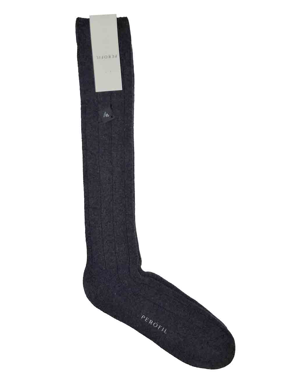 Calza Gambaletto Uomo pesante a coste larghe color grigio antracite melange Perofil