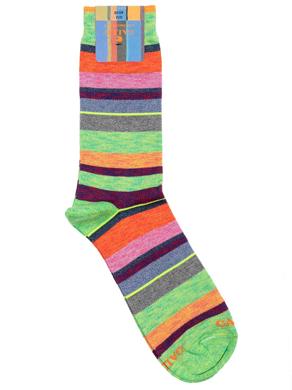 Calzino corto-medio uomo in filo di scozia fantasia righe multicolor sui toni del verde-lime melange/arancio melnage/rosa melange/ipolla melange/denim/grigio melange, taglia unica 40-45.