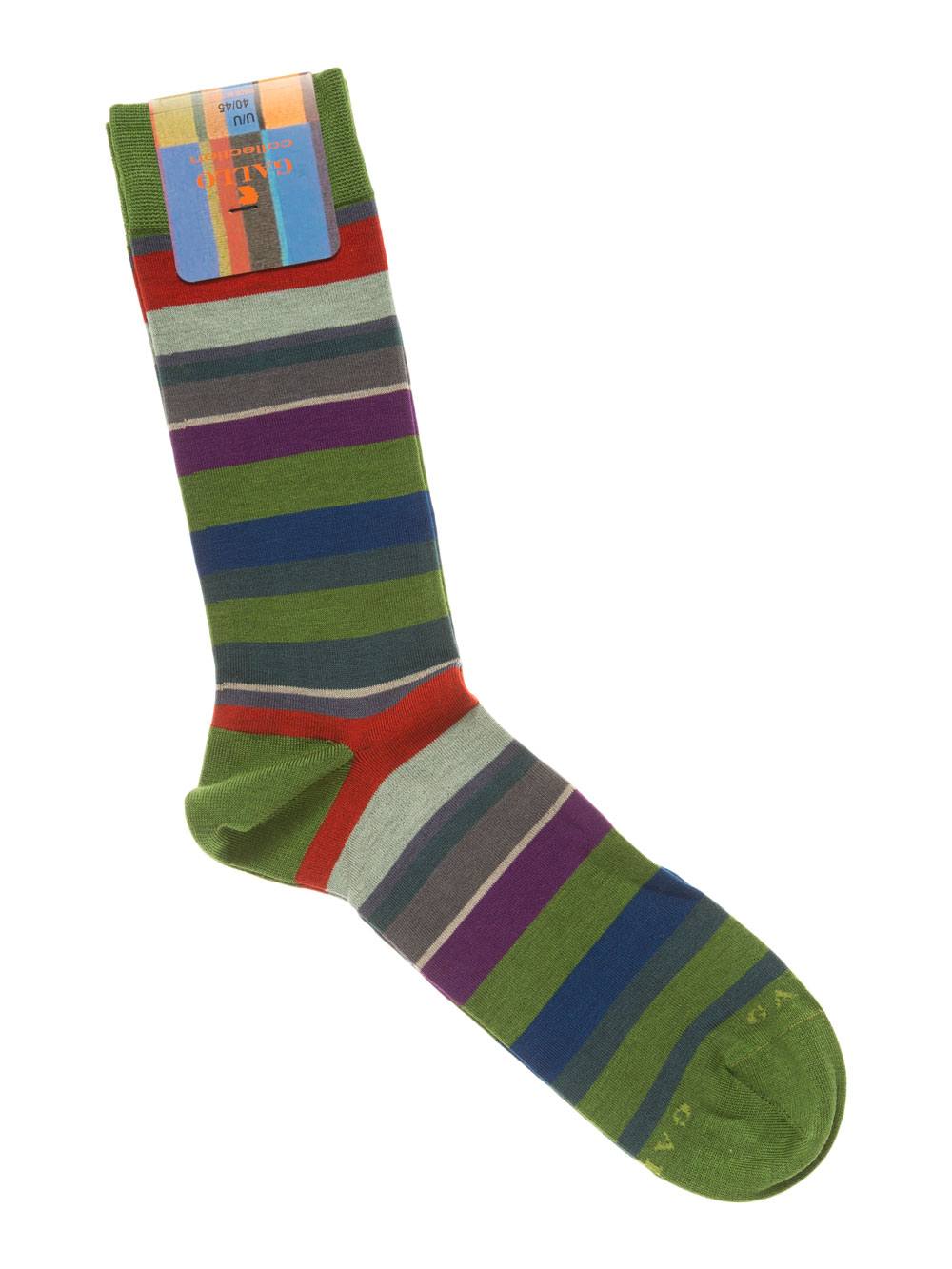 Calzino Corto Uomo Gallo Fantasia Multirighe Verde Rosso Viola