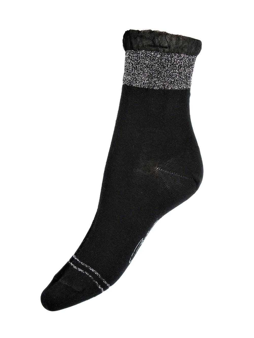 Calzino nero/argento in cotone elasticizzato, rifinitura caviglia in lurex e viscosa.