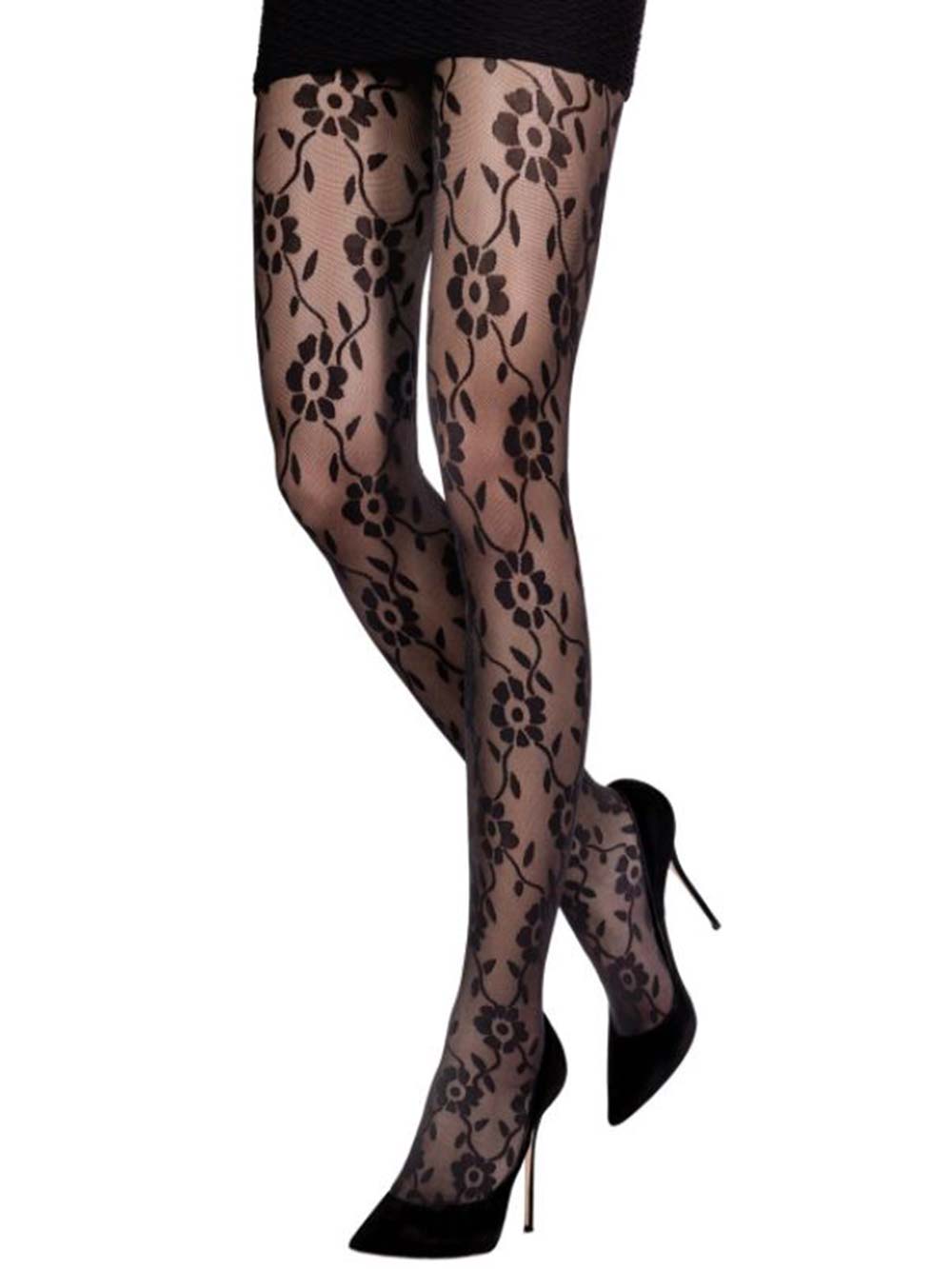 Collant moda donna in microfibra 30 denari, lavorazione a microretina toulle + floreale coprente.