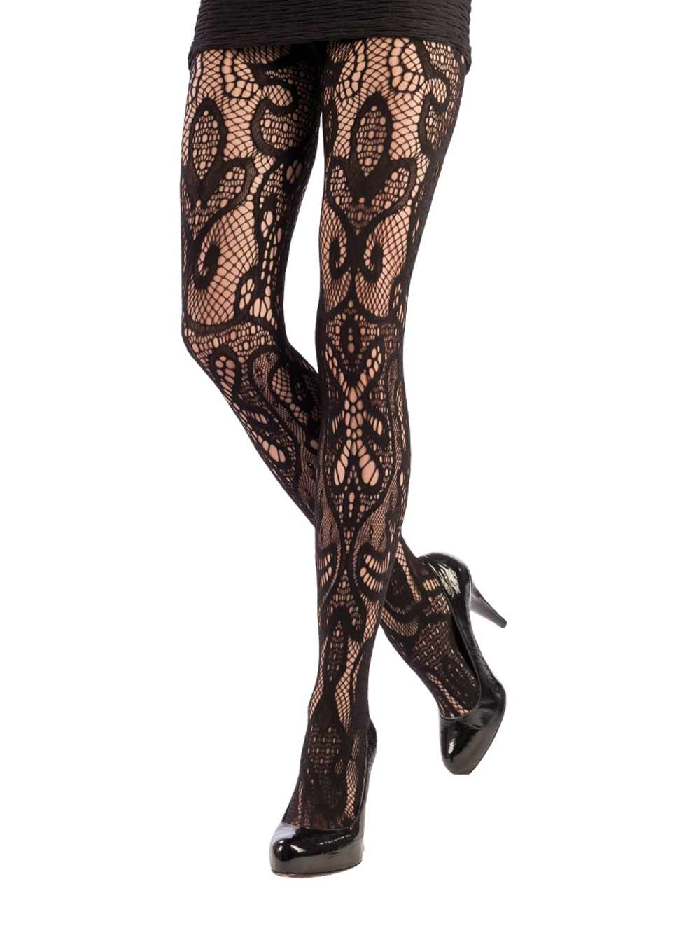 Collant moda donna Emilio Cavallini, collezione Autunno Inverno 2017, nero, in microfibra, con lavorazione rete e arabesque.