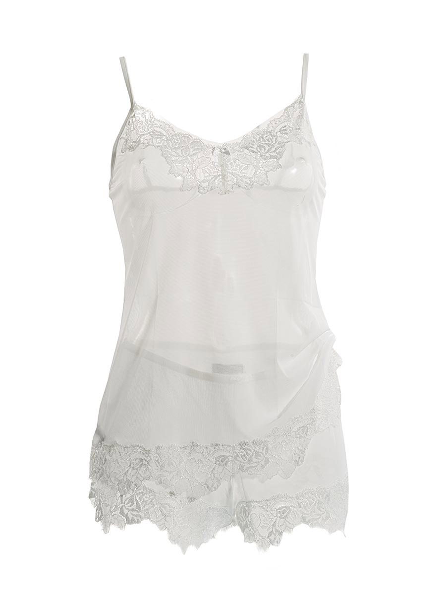 Coulotte in toulle effetto pantaloncino con finitura gambaletto in pizzo pregiato.