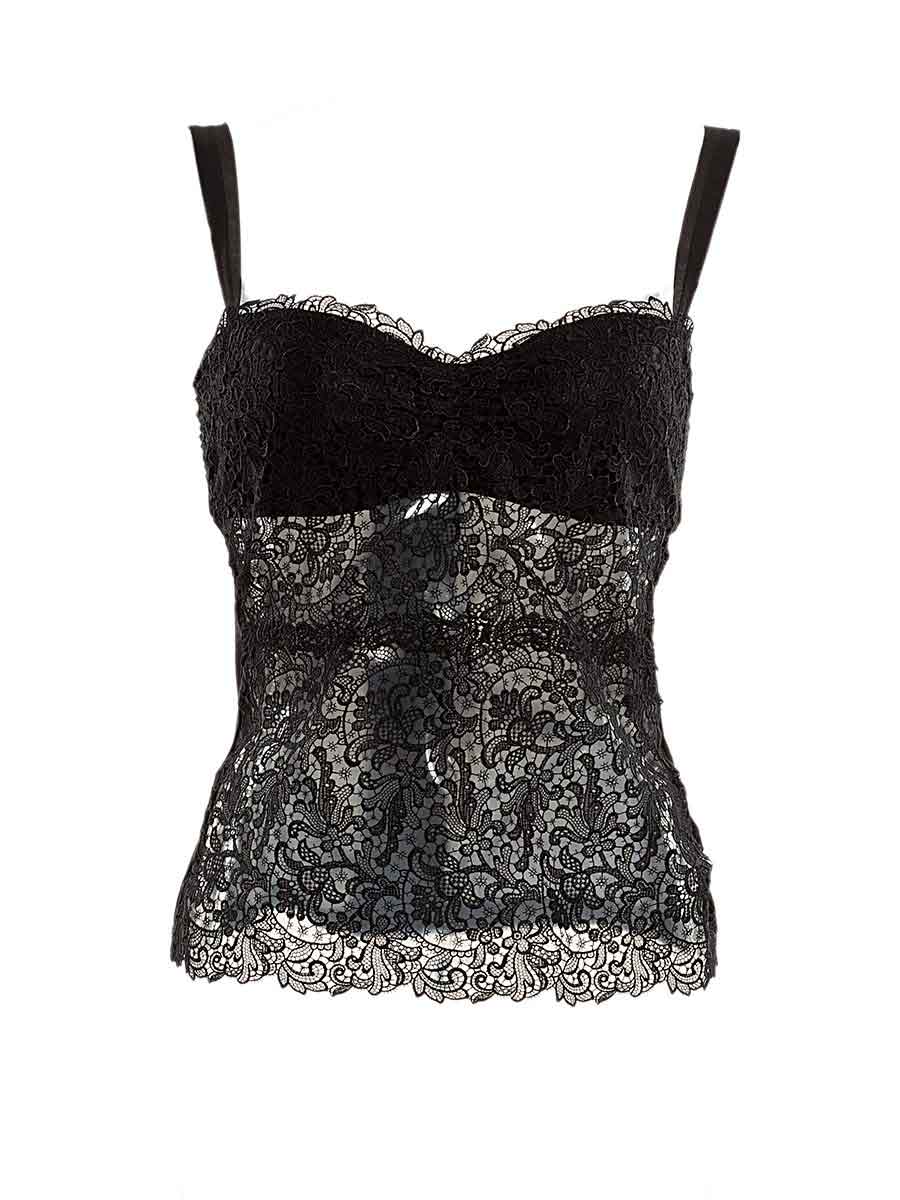 Bustino – canotta con coppa imbottita a balconette soprente, spallini esterni larghi e regolabili, sul davanti tutto pizzo macramè di grande pregio, traforato effetto “tatoo”. Dietro satin disegnato, allacciatura regolabile con gancini.