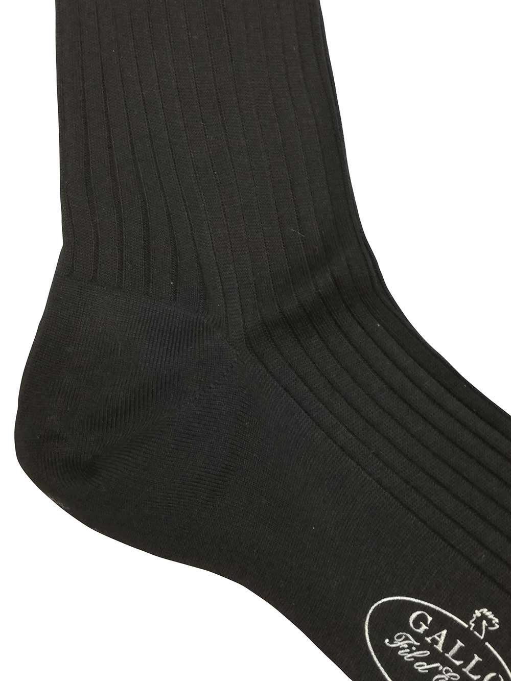 Calza uomo gambaletto a coste medie (derby) in puro filo di scozia sui toni del nero.