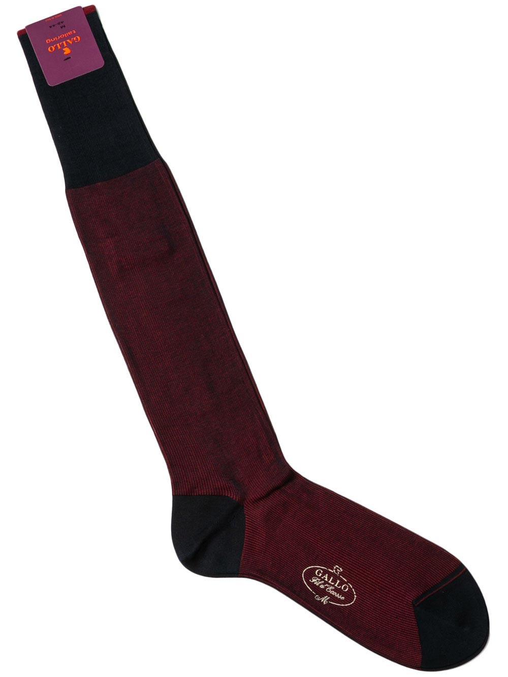 Calza uomo gambaletto a microcostine 1/1 in puro filo di scozia sui toni del blu oltremare/ribes.