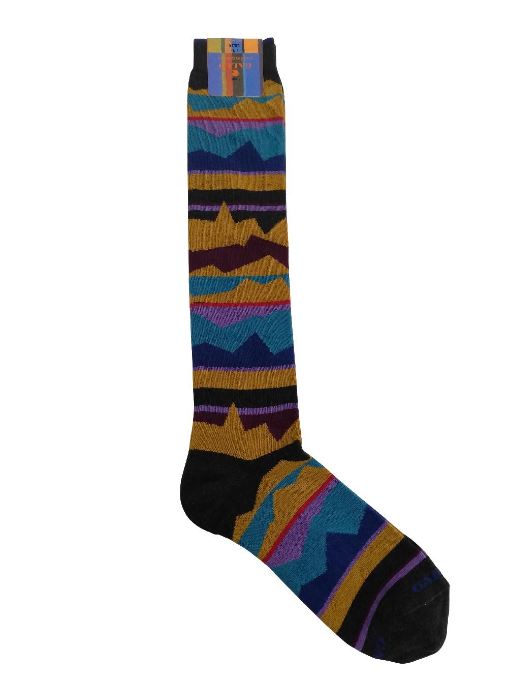 Calza uomo gambaletto maglia rasata in caldo cotone elasticizzato, new fantasia geometrica righe/onde sui toni del giallo senape/bordeaux/grigio antracite/blu/ottanio chiaro. Scritta “Gallo” in punta in contrasto di colore. Modalità di lavaggio: Lavare a mano o in lavatrice a temperatura massimo 40°, lavare a secco, no candeggio, asciugatura non a tamburo, non stirare.