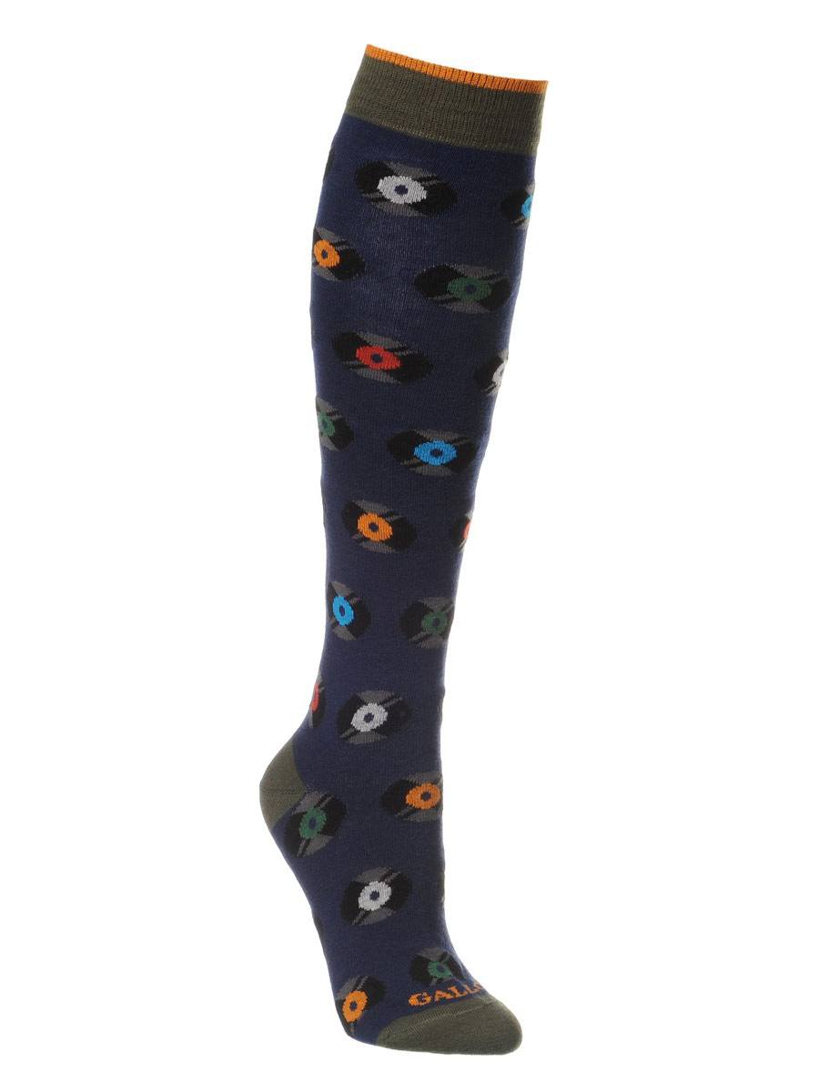Gambaletto Uomo in Cotone fantasia dischi vinile di colore blu, taglia unica corrispondente al 40-45 di piede. Manutenzione:Lavare a mano o in lavatrice a temperatura massimo 40°, lavare a secco, no candeggio, asciugatura non a tamburo, non stirare. 86% cotone, 13% poliammide, 1% elastan