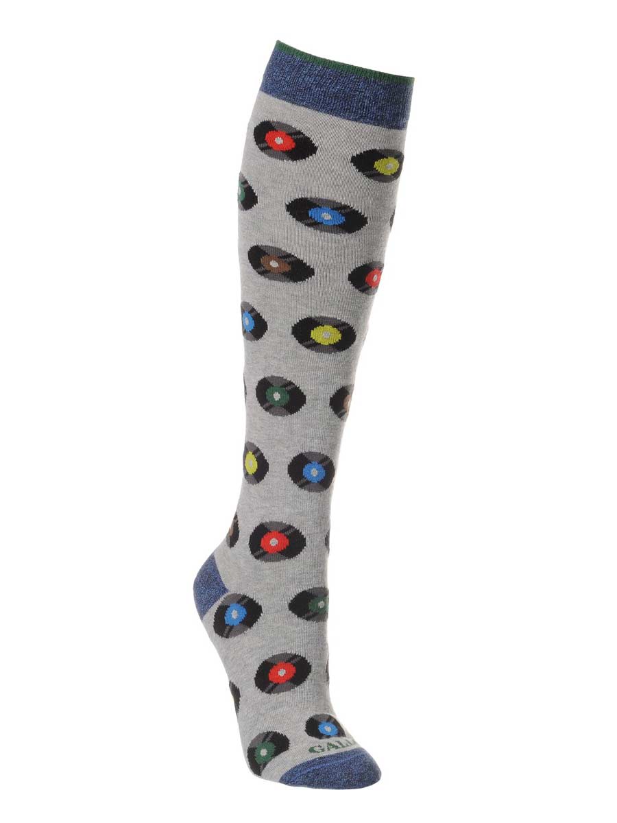 Gambaletto Uomo in Cotone fantasia dischi vinile di colore grigio, taglia unica corrispondente al 40-45 di piede. Manutenzione:Lavare a mano o in lavatrice a temperatura massimo 40°, lavare a secco, no candeggio, asciugatura non a tamburo, non stirare. 86% cotone, 13% poliammide, 1% elastan