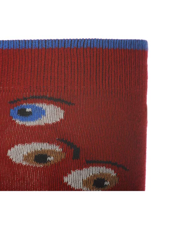 Calza uomo gambaletto in cotone elasticizzato fantasia occhi con diverse espressioni. Scritta “Gallo” in contrasto di colore come il bordo del polsino
