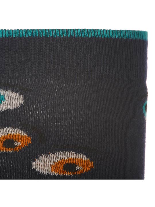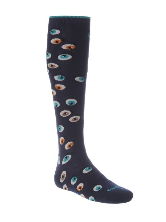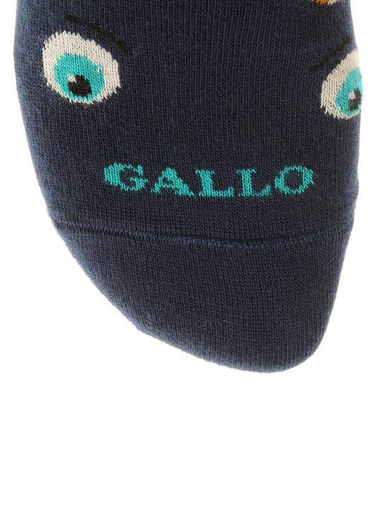 Calza uomo gambaletto in cotone elasticizzato fantasia occhi con diverse espressioni. Scritta “Gallo” in contrasto di colore come il bordo del polsino