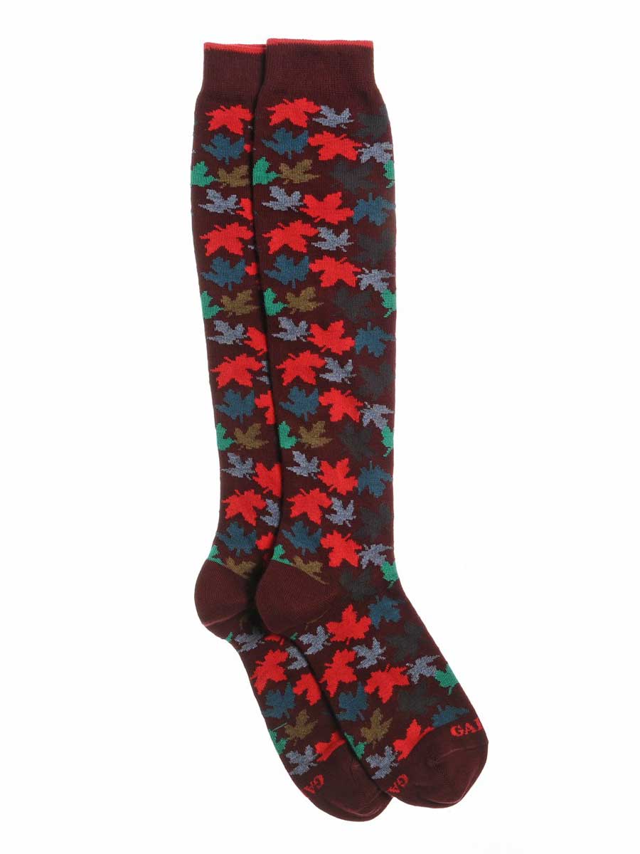 Gambaletto Uomo in Cotone fantasia foglie autunno di colore bordeaux, taglia unica corrispondente al 40-45 di piede. Manutenzione:Lavare a mano o in lavatrice a temperatura massimo 40°, lavare a secco, no candeggio, asciugatura non a tamburo, non stirare. 87% cotone, 12% poliammide, 1% elastan