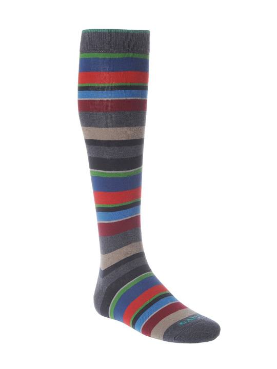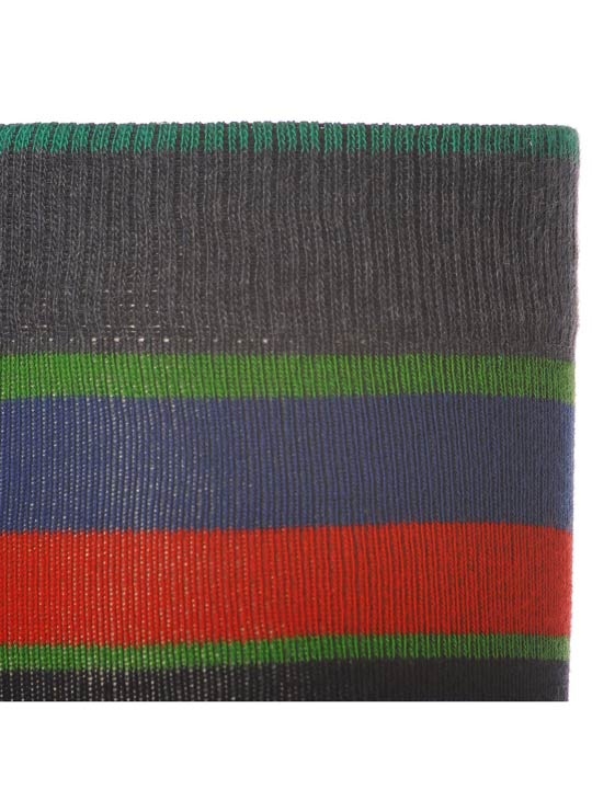 Calza uomo gambaletto maglia rasata in cotone elasticizzato, fantasia “multicolor” righe orizzontali di diverse dimensioni. Scritta “Gallo” in punta in contrasto di colore. Composizione: 80% Cotone 18% Poliammide 2% Elastan. Modalità di lavaggio: Lavare a mano o in lavatrice a temperatura massimo 40°, lavare a secco, no candeggio, asciugatura non a tamburo, non stirare. Taglia unica 40-45.