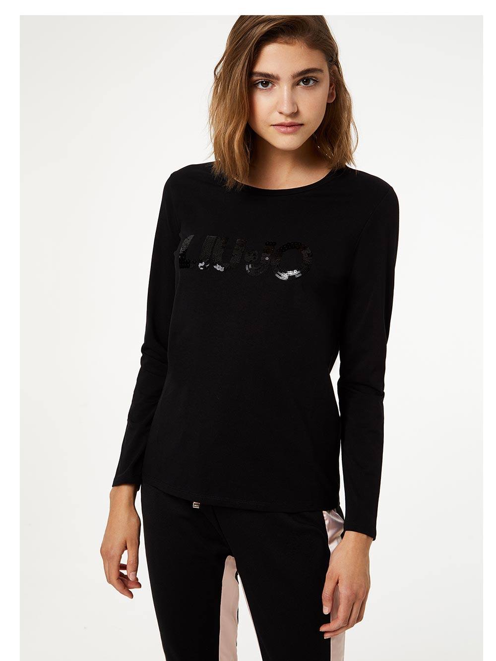 Maglia Donna Liu Jo Sport Maniche Lunghe Nera con Paillettes