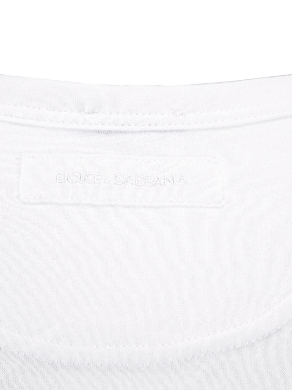 Maglia uomo Dolce & Gabbana, collezione Primavera Estate 2018, bianca, girocollo, a manica lunga, esternabile, in puro cotone, con logo sul retro del collo, mano scivolosa, vestibilità semi-confort.