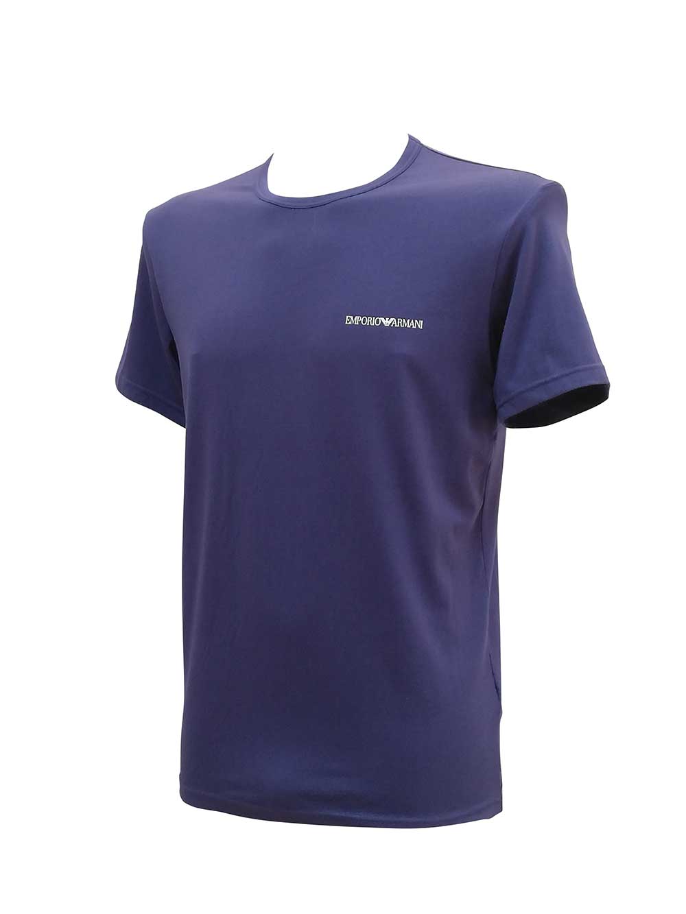Maglia esternabile azzurra scuro uomo girocollo in morbido cotone elasticizzato, mezza manica, linea confort buona vestiibilità, sul davanti micrologo laterale bianco gommato, no stiro.