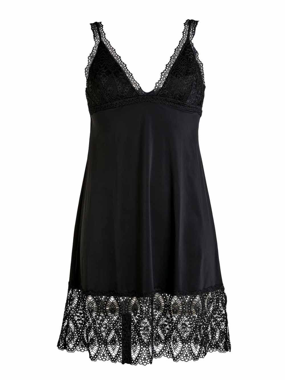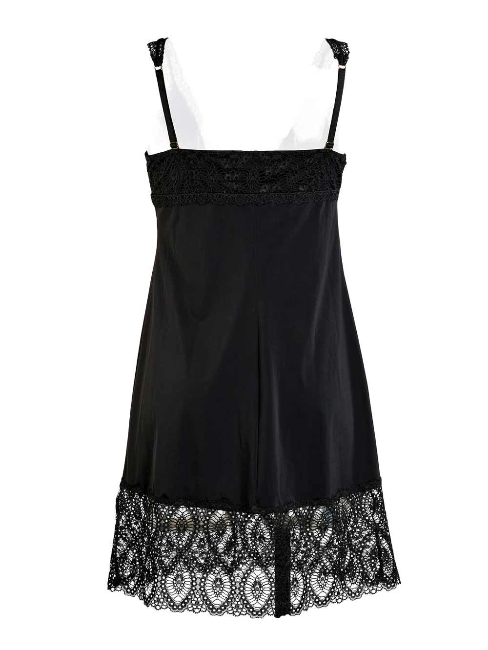 Parigina/sottoveste donna Valery, collezione Autunno Inverno 2017, nera, in microfibra elasticizzata, mano compatta, con reggiseno a triangolo coperto da pizzo elasticizzato fino al girotorace e con alta balza di rifinitura sul fondo.