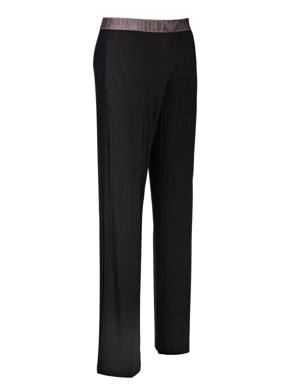 Pigiama uomo Emporio Armani, collezione Autunno Inerno 2017, nero, con scollo a V piccolo, in morbidissimo modal mano seta, maglia vestibilità aderente; pantalone dritto sul fondo elegante, con tasche laterali e elastico bronzo in vita.