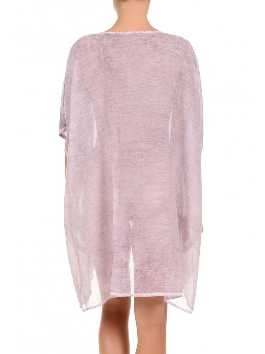 Poncho/kaftano linea over size color malva effetto maltinto, scollo con applicazione di ricamo, più corto sul davati,.