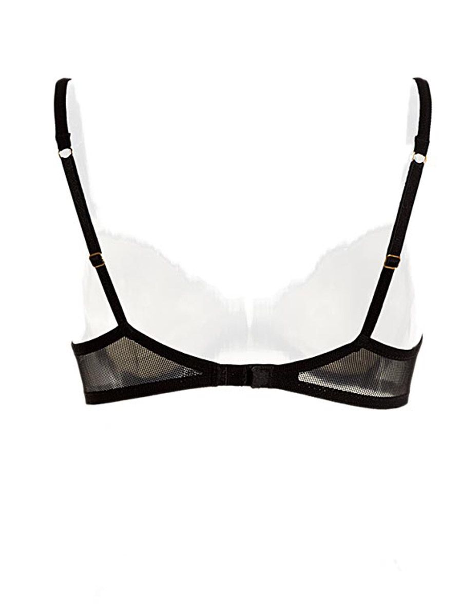 Reggiseno push-up pizzo rete foderato. Coppa liscia, tasca interna con pesciolino ad olio estraibili. Dietro in toulle rete. Spallini regolabili.